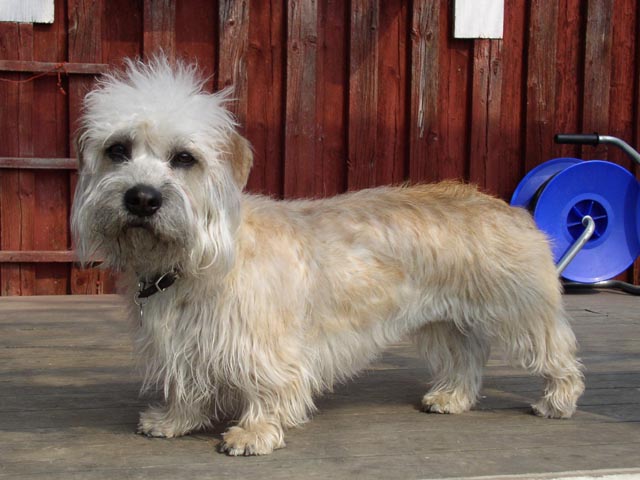 The dandie dinmont terrier, or dandie, was first bred in the early 17th century as a hunting dog, its main prey being otters and badgers.