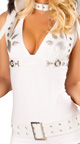 Husky halloween costume n6205 includes white husky romper, white harness, white collar and leash, husky costume claw legwarmers and husky costume hood, that looks very hot and sexy.